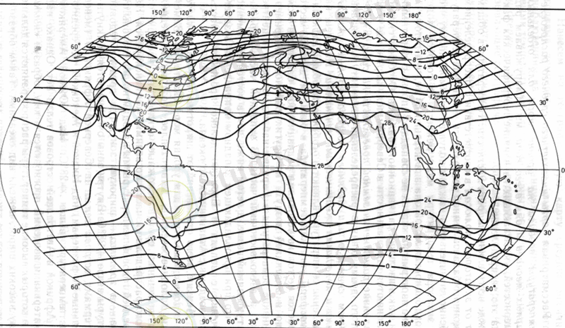 Қаңтар айында солтүстiк шарда қыс, оңтүстiк шарда жаз орнайды. Солтүстiк жарты шардың тропигiнде температура материктер мен мұхиттарда бiркелкi келедi, ал тропиктен жоғары жерлерде температура полюске қарай жылдам төмендейдi (1-сурет) . Солтүстiк Америка және Евразия материктерiнде изотермалар экваторға қарай иiлiп суық тiлдерi байқалады. Солтүстiк Атлант мұхитының шығыс бөлiгiнде жылы Гольфстрим ағысының арқасында жылу тiлi айрықша байқалады, нөлдік изотерма поляр шеңберiне кiріп тұр. Ондай жылу тiлi Тынық мұхитында да бар.