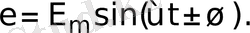 Cинустың аргументін синусоидал шаманың фазасы деп атайды. Фаза уақыттан тәуелді өзгеріп отырады және ол қарастырып отырған мезетте шаманың синусоидадағы орнын көрсетеді. Егер t = 0 болса, онда (15. 2) өрнегі бойынша e = 0, яғни синусоида координаттар басынан өтеді. Ал, координаттар басынан өтпейтін синусоиданың өрнегінде оның оң мәнге өсе бастаған кезде координаттар басынан қандай қашықтықта жататынын көрсететін бұрыш синустың аргументіне қосылуы немесе одан алынуы керек. Сондықтан, жалпы алғанда, синусоидал шама былайша өрнектеледі: