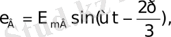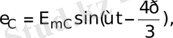 Үшінші жақтауша (СZ) бірінші жақтаушамен сағат тілінің бағытында 240 0 жасап орналасқандықтан, ондағы ЭҚК-тің синусоидасы нольден оң мәнге өсе бастағанда бұрыш (уақыт) осін координаттар басынан оңға қарай 240 0 қашықтықта қиып өтеді, яғни бірінші жақтаушаның ЭҚК-нен фазасы бойынша 240 0 -қа ығысқан, ал уақыт бойынша одан периодтың үштен екісіне қалып отырады (15. 2, в-сурет) . Олай болса, үшінші жақтаушаның (СZ) ЭҚК-і: