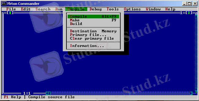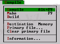 6-сурет. Compile менюінің пунктері (Destination опциясы Memory қалпында)