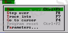 Run (іске қосу) менюі. Бұл меню нұсқаулары программаны іске қосу әрекетін және программаның “орындалуын түзеу” режиміне қосуға немесе бұл режимнен шығуға пайдаланады.