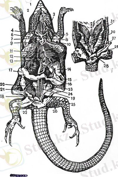 (Сурет - 1) Сойып көрсетілген кесірткенің ішкі құрылысы: