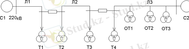 Берілген энергожүйе бойынша әр элементтің кедергісін максималды және минималды режимдерінде анықтаймыз. Есептеу U осн =220 кВ-қа келтірілген, атаулы бірлікте есептеледі.