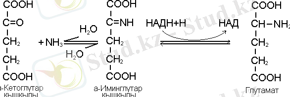 Өсімдіктерде аммонидің ассимиляциянуының негізгі жолы глютаматдегидрогеназа ферментінің қатысуымен а-кетоглутар қышқылының тотықсызданып аминденуінен, глютамин қышқылының пайда болу реакциялары болып есептелінеді /10/.