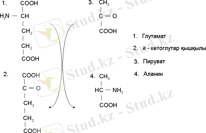 Глютамин қышқылының амин тобының трансаминдену арқылы басқа қышқылдарға ауыса алатындығы А. Е. Браунштейн жіне М. Г. Крицман зерттеулері нәтижесінде анықталды. Бұл реакцияны катализдейтін ферменттер аминотрансферазалар деп аталады. Мысалы ретінде глутамин қышқылының пайда болуын келтіруге болады /12/.