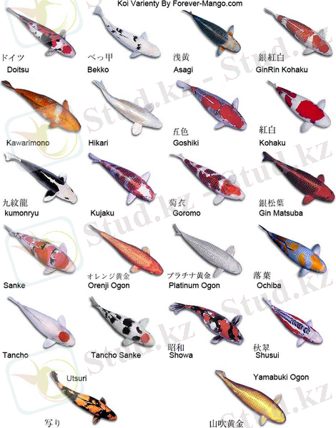 2 сурет - Коя балығының селекция нәтижесінде алынған түрлері