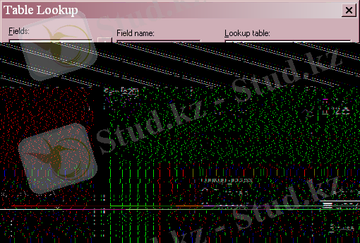 Table Lookup - бұл бөлім берілген кестенің өрісін басқа көрсетіліп отырған кестенің өрісімен байланысын көрсетеді. Table Lookup-ті таңдағаннан кейін Define - анықтау батырмасы шығады. Бұл батырманы басқанда көру диалогтық терезесі ашылады. Бұл терезеде драйверлер мен псевдонимдерді қолдана аламыз.