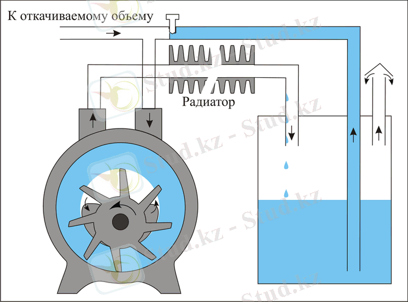 Су буы бар ауаның қоспаларын айдап шығару үшін сұйықтық ретінде су қолданылады, ал хлорды айдап шығару үшін - концентрленген күкірт қышқылы және т. б(4-сурет) . Құрылымы мен пайдалану шарттары жағынан бұл сорғылар поршендіге қарағанда қарапайым, өйткені қақпағы (клапан) мен тарату құрылғысы жоқ.