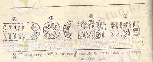 4-сурет. Мембрананың молекулалы қүрылысы. (Ж. -К. Ролан, А. Селоши, Д. Селоши бойынша) .