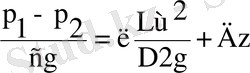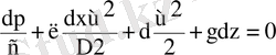 Dp/ρ шамасы dx аумағындағы масса бірлігіне жатқызылатын сұйықтықтың орын ауыстыру жұмысын білдіреді. Бұл жұмыс [λ(dx/D) (w 2 /2) ] үйкеліс күшінен өтуге, сұйықтықтың (dw 2 /2) кинетикалық энергииясының өзгеруіне және dz шыңына сұйықтықты көтеруге шығындалады. ρ=idem (тамшылы сұйықтық) деп санаған жағдайда құбырдың тұрақты dw 2 /2=0 диаметрінде, интегралдаудан кейін алатынымыз