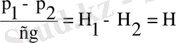 (2. 4) теңдеуіндегі әр мүше масса бірлігіне емес, сұйықтықтың салмақ бірлігіне, яғни шыңға қатысты жұмысты білдіреді. p 1 (ρg) шамасы р 1 артық қысымының әсерінен құбырдың бастапқы нүктесінде пьезометрде сұйықтық көтерілетін Н 1 шыңын білдіреді, p 2 (ρg) - Н 2 шыңын білдіреді.