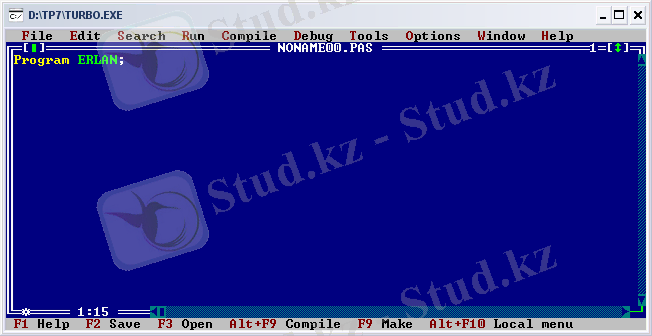 1-Сурет. Турбо Паскаль жұмыс ортасы.