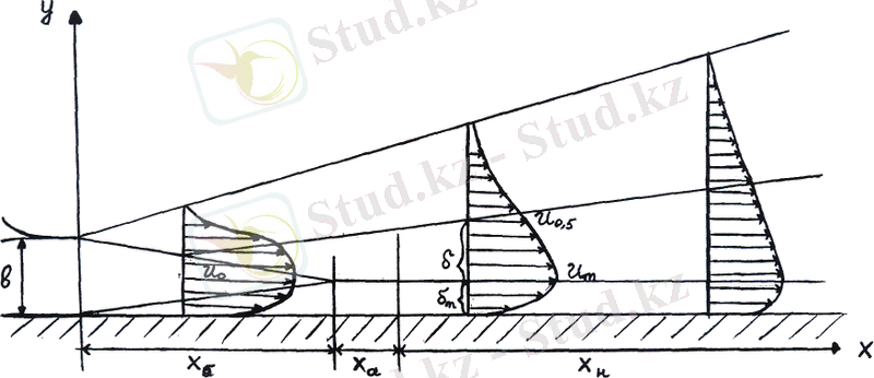 1-суретте жартылай шектелген жазық параллельді ағыншаның сызбасы келтірілген.