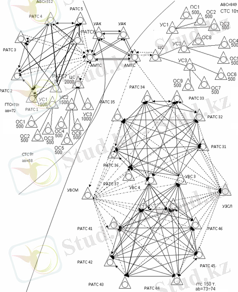 2. 1 ОАКТС-ң екі жақты зонасында жеті мәнді нөмерлеумен желі құрылымын келтіру, олардың әрқайсысы екі жергілікті желі бойынша орналасады, зоналар арасындағы байланысты көрсету керек. Айналма жолдарды бірінші класты екі УАК көмегімен құрастыру. Жергілікті желілердің сиымдылығы мен типтері 1-кестеде көрсетілген. Станциялардың жергілікті желілердің саны мен сиымдылығын былайша таңдалады: желі құрылымын көрсету және абоненттерді нөмерлеу үшін.