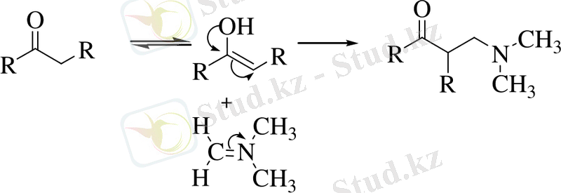 Манних реакциясы - әлсіз қышқыл ортада жүретін реакция. Ол диалкиламинметил топтарымен кетондар және альдегидтердің α-алкилденуіне әкеледі /17/: