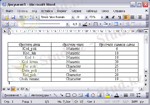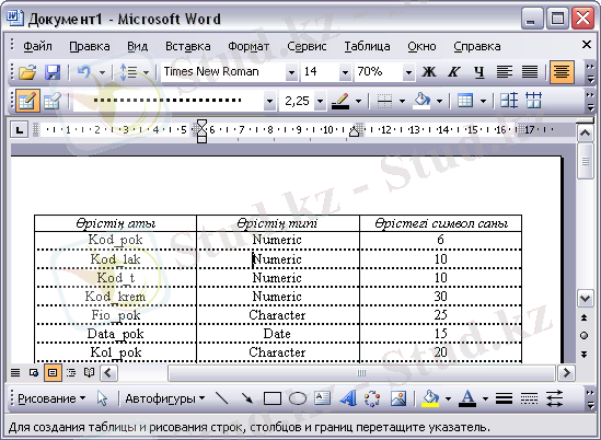 3. 1-сурет . “Кестені кірістіру” сұқбат терезесі.