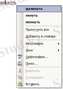 Сөздегі немесе сөйлемдегі қателіктерді түзету үшін онда маустың оң жақ батырмасын шерту керек, нәтижесінде қателіктерді түзетудің нұсқалары ұсынылатын жанама меню пайда болады (6. 7 сурет) . Осы менюдің көмегімен сөздікке сөз үстемелеуге болады немесе мұндай сөздерді өткізіп жіберу керек.