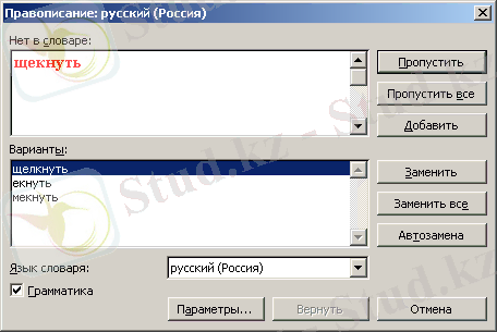 Рис. 6. 8. Емле ережесі (Правописание) сұқбаттық терезесі.