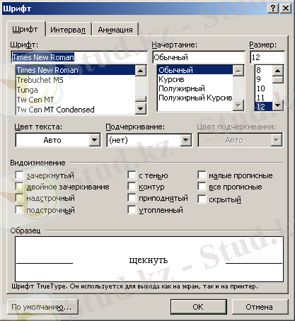 - Формат→Қаріп(Формат→Шрифт) менюі командасы