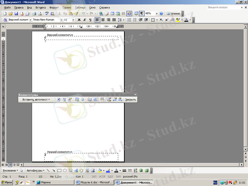 Әрбір бетте жоғарғы немесе төменгі колонтитулды бірдей етіп дайындау: