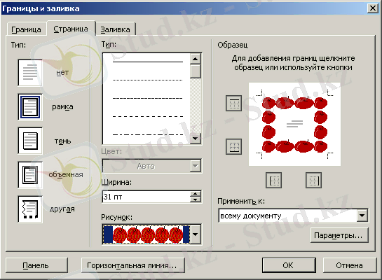 - Мәтінді орағыту менюі(Меню Обтекание текстом) -суреттің мәтіндегі орналасуын тағайындайды