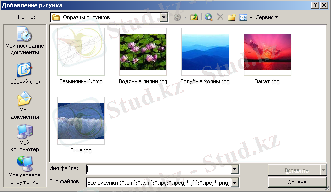 - Суретті үстемелеу(Добавить рисунок) - Құжатқа сурет кірістіру үшін қызмет етеді