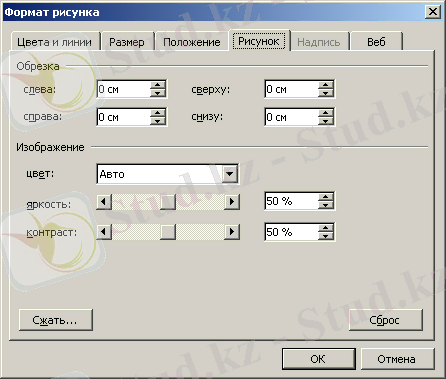 - Объектінің форматы(Формат объекта) -кескіннің барлық параметрлерін баптауға болатынСурет форматы(Формат рисунка) (7. 6 сурет) терезесін шақырады