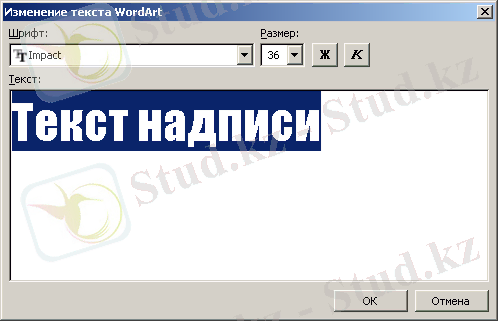 3. WordArt мәтінін өзгерту (Изменение текста WordArt) терезесіне (7. 9 сурет) керек мәтінді енгізіңдер