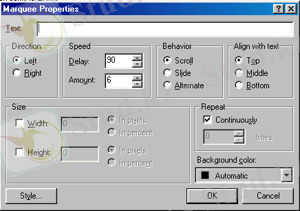 Marquee Propertіes сұхбат терезесі (2-сурет) ашылады, онда Web-бетке орналастырылатын объекті параметрлерін орнатуға болады.