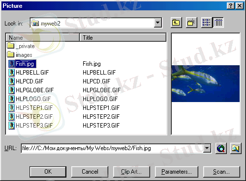 1 -Сурет. Pіcture(Суретті қою) диалог терезесінен графикалық файлды таңдау.
