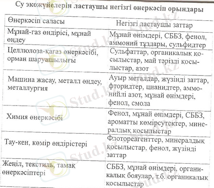 - Мұнай өндіруші және өңдеуші өнеркәсіп орындарының ағызынды сулары.