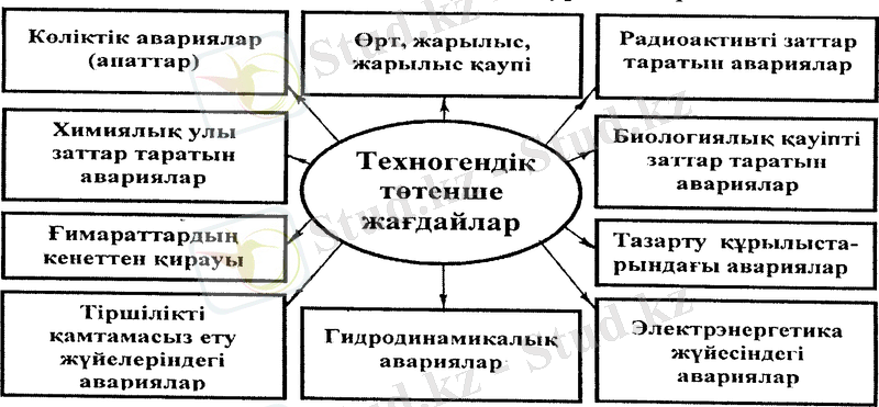 - Техногенді апаттар (өндірістік авариялар, өрт, жарылыс)