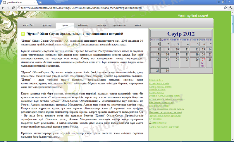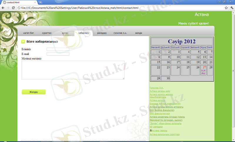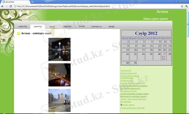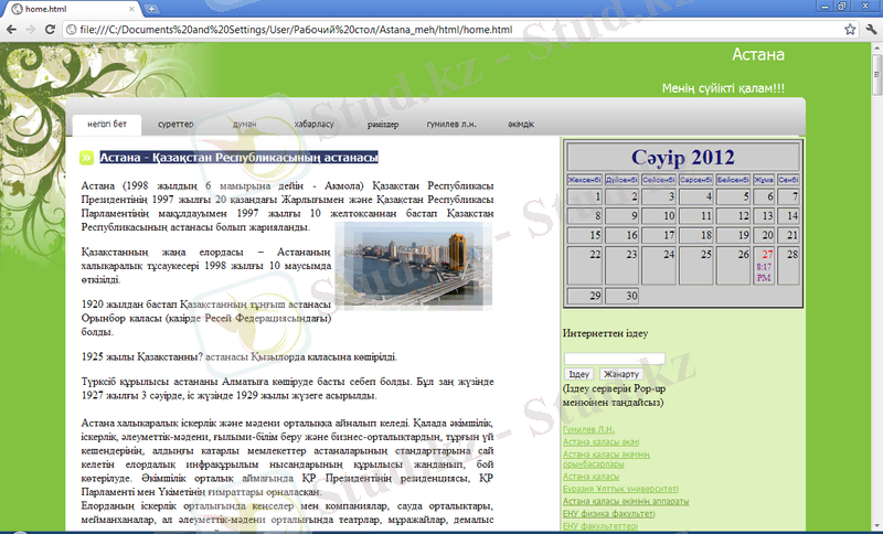 Астана - менің сүйікті қалам: веб-технологиялар негізіндегі веб-сайт құру курстық жұмысы