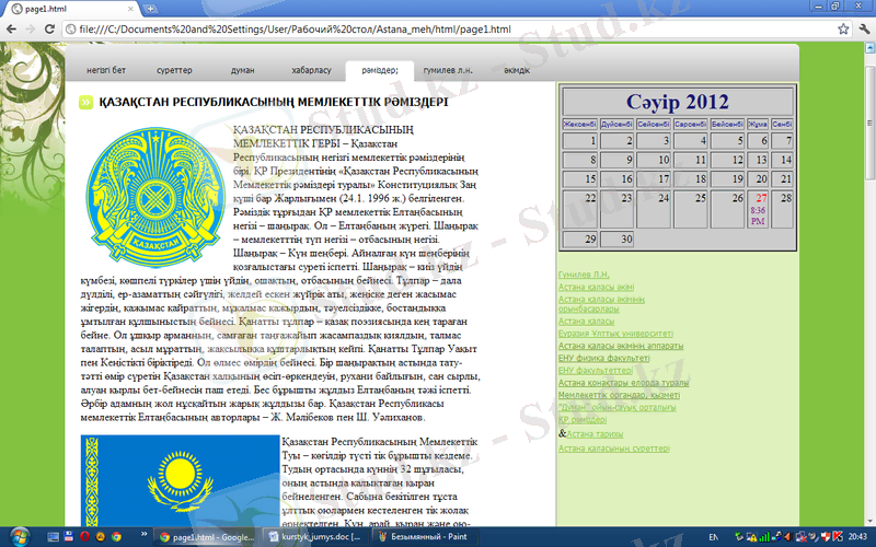 Бұл сілтемеде Қазақстан Республикасының рәміздері жайлы айтылып кеткен. Мұнда рәміздердің шығу тарихымен, әр белгілер қалай алынғаны туралы мәліметтер жазылған. (5-сурет) .