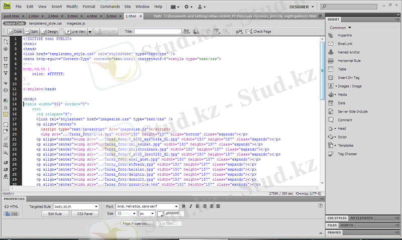 Курстық жұмыстың негізі кестелерден тұрады деп айтуға болады. Кесте тұрғызу <TABLE> және </TABLE> тәгтері көмегімен орындалады, оның әрбір жолын анықтау - <TR> және </TR> тәгтері арқылы, ал сол жолдағы бағаналар - <TD> және </TD> немесе <TH> және </TH> тәгтері арқылы анықталады. Web-парақтардың басқа Web-парақтарға қатысты сілтемелерінің болуы - WWW жүйесінің ең тартымды ерекшеліктерінің бірі. HTML құжаттарында гипермәтіндік сілтемелерді құру өте жеңіл. Курстық жұмыстағы кез келген парақтан басқа кез келген қосымша параққа жеңіл өтуге болады. Олар HTML тілінің <А> . . . </А> тәгтері арқылы жасалған. Гиперсілтемелерді құрған кезде HREF= ” . . . ” атрибуты міндетті түрде қажет. Оның мәні сол сілтеме көрсетіп тұрған файл атынан немесе оның Интернеттегі URL-адресінен тұрады. Сілтеме мәтін <A> мен </A> тәгтерінің арасына орналасады [3-7] .