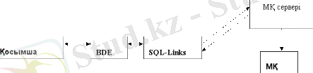 Delphi қосымшасы МҚ-на BDE (Borland Datеbase Engine - Borland фирмасының МҚ процессоры) арқылы қатынайды.