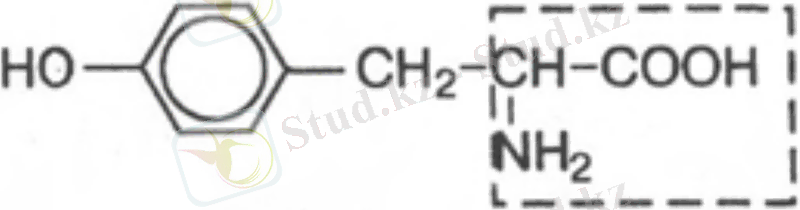 12. Тирозин, пара-гидроксифенилаланин. Ауыстырылатын амин қышқылы. Молекуласында гидроксифенил тобы бар. Құрылымы бойынша фенилаланинге жақын, бірақта оны ауыстыра алмайды.