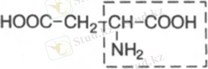 16. Аспарагин қышқылы (аспартат), ауыстырылатын амин қышқылы, молекуласында екінші карбоксил тобы бар, белокқа қышқылдық қасиет береді.