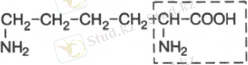18. Лизин, α-, -ε-диаминокапрон қышқылы. Ауыстырылмайтын амин қышқылы, адам мен жануарлар ұлпасында басқа заттардан түзілмейді. Молекуласындағы екінші амин тобы белокқа сілтілік қасиет береді. Лизин тағамда аз болса, жас өспірімдердің бойы өспей қалады, мал өнімі азаяды.