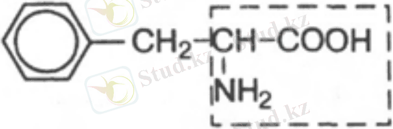 7. Фенилаланин, α-амино-β-фенилпропион қышқылы. Адам мен жануарлар ұлпасында түзілмейтін, маңызды ауыстырылмайтын амин қышқылы, құрамында ароматикалық сақина бар.