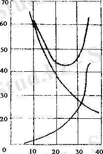 1-сурет. Қоршаған орта температурасына байланысты ағзаның жылу беруі (а-конвекциямен және сәулеленумен, б-ылғалдың булануымен, в-ортақ) .