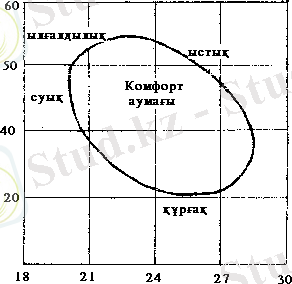 2-сурет. Адамның жылулық күйіне температураның ылғалдылығы режимінің әсері.