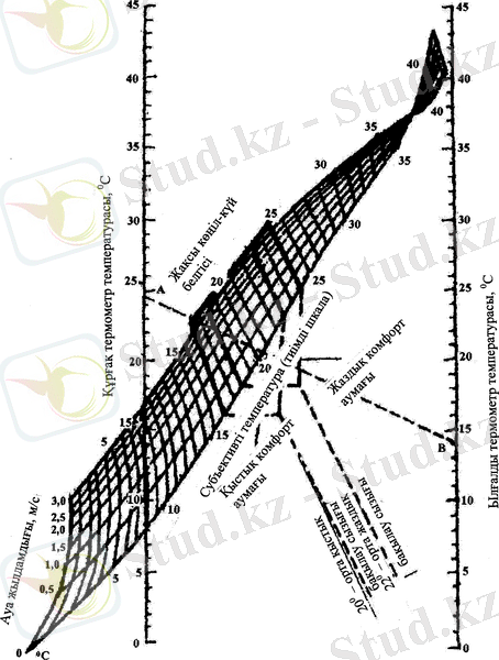 3-сурет. Ауа ортасының температурасының әсерлі және әсерлі-эквивалентті номограммасы.