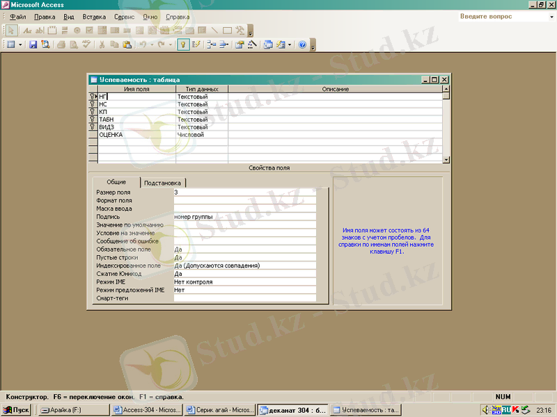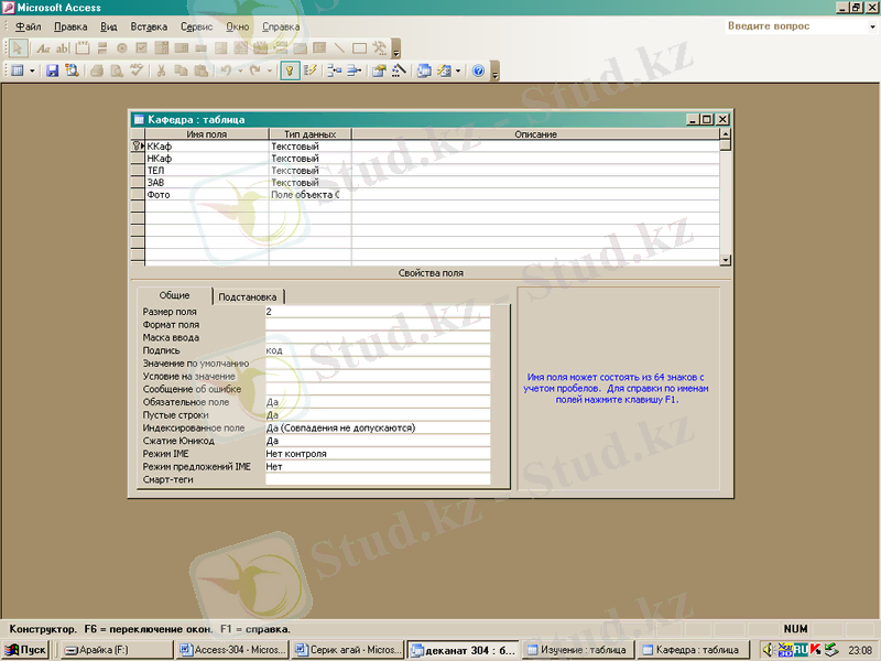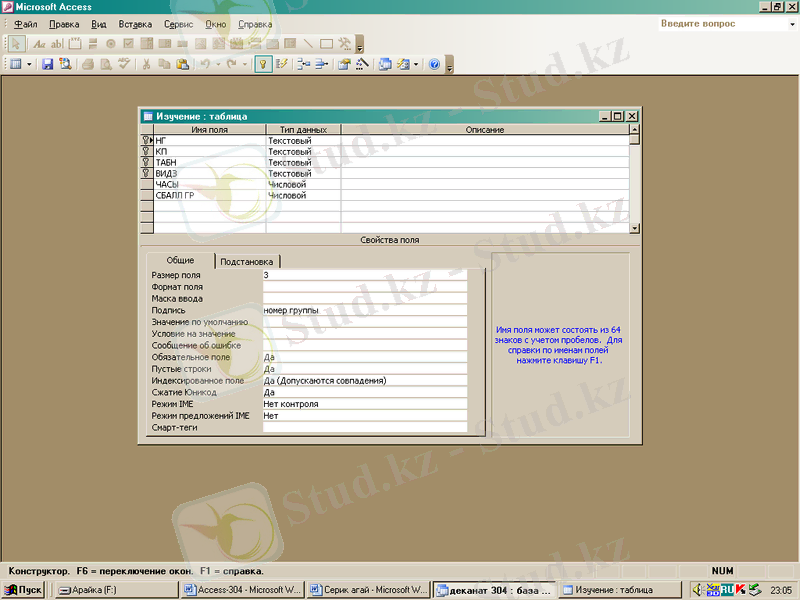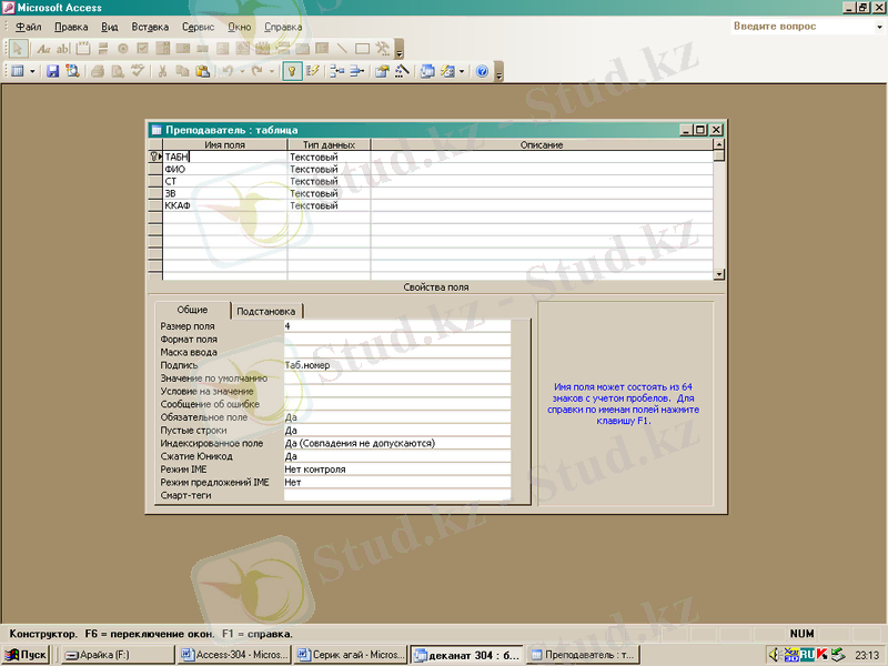 Конструктор таблиц терезесінде өріс атауларын, олардың құрылымын кесте бойынша өзгерттік.