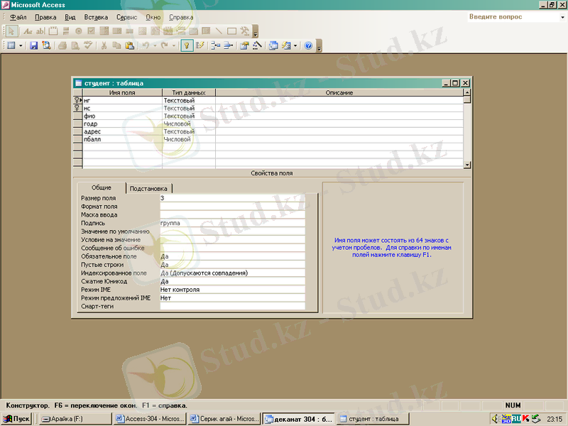 Лабораториялық жұмыс: Microsoft Access жүйесінде деректер қорын құру және өңдеу
