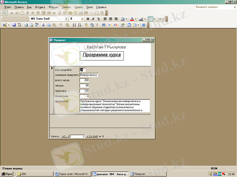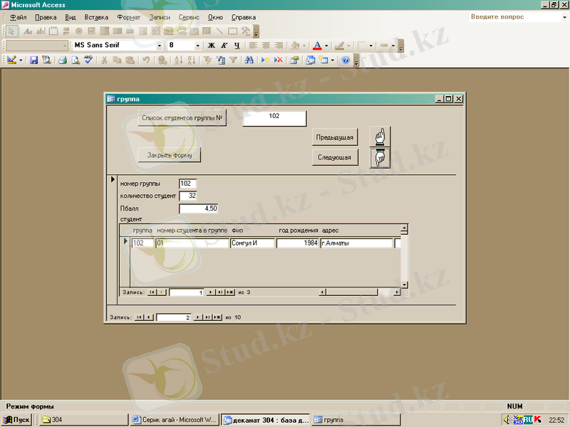 - ДЕКАНАТдеректер базасындаФормы-Создатьбұйрығын орындаймыз.
