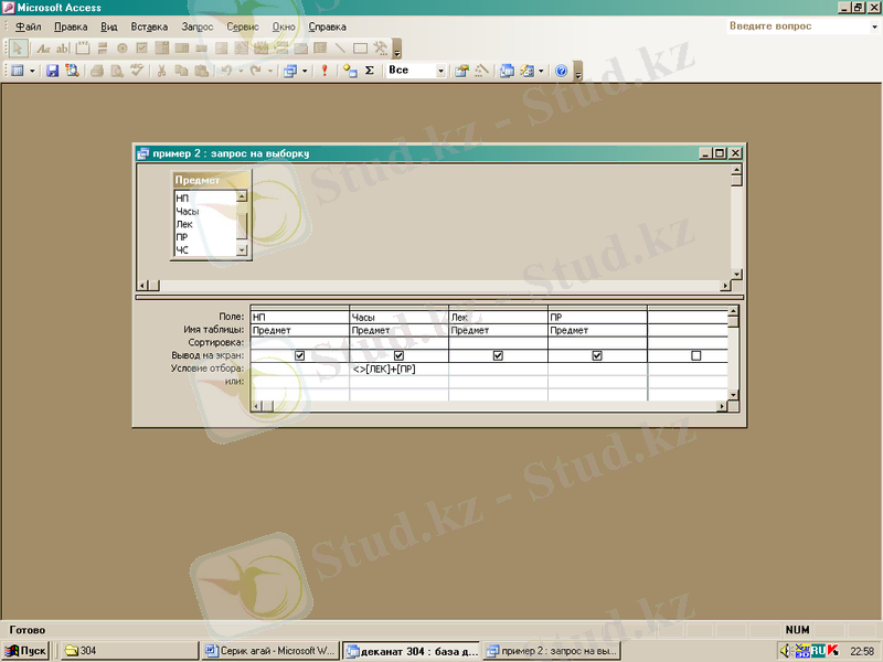 1. Деректер базасында аты аталған сұранысты белгілеп, оны Конструктор режимінде ашамыз.