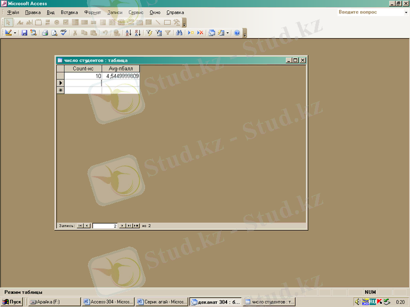 - Бұл сұраныстыЧИСЛО СТУДЕНТОВ И СРЕДНИЙ БАЛЛ ГРУППЫатымен сақтаймыз.