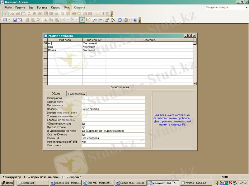 Кестелер констукторын пайдаланып Группа атты кесте құрамыз.
