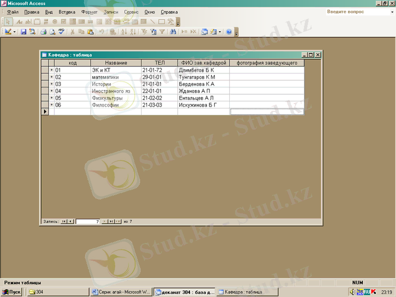 - ДЕКАНАТдеректер базасынан бір объектіні таңдап алып, Создатьпернесін басамыз.